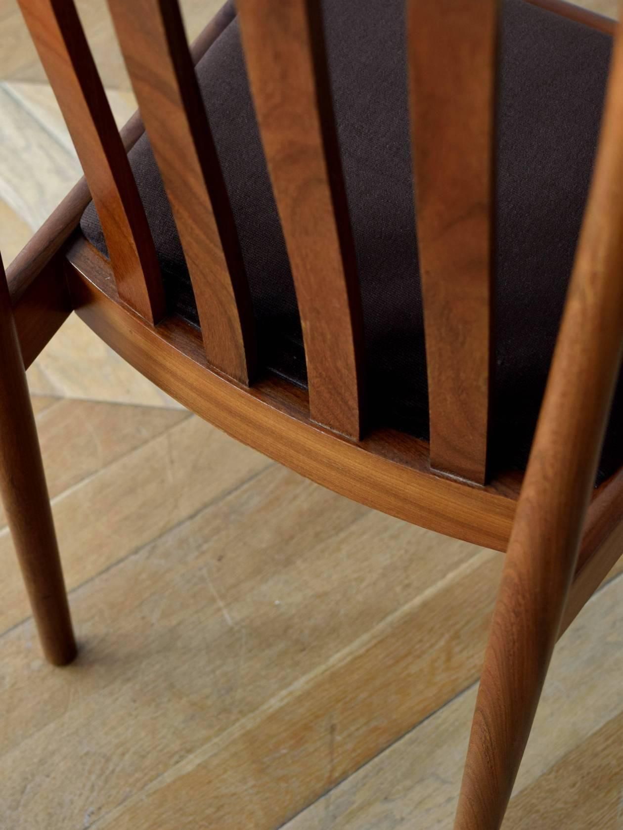 脚や背もたれにもテーパードが効いており、すらりとスタイリッシュな印象です。