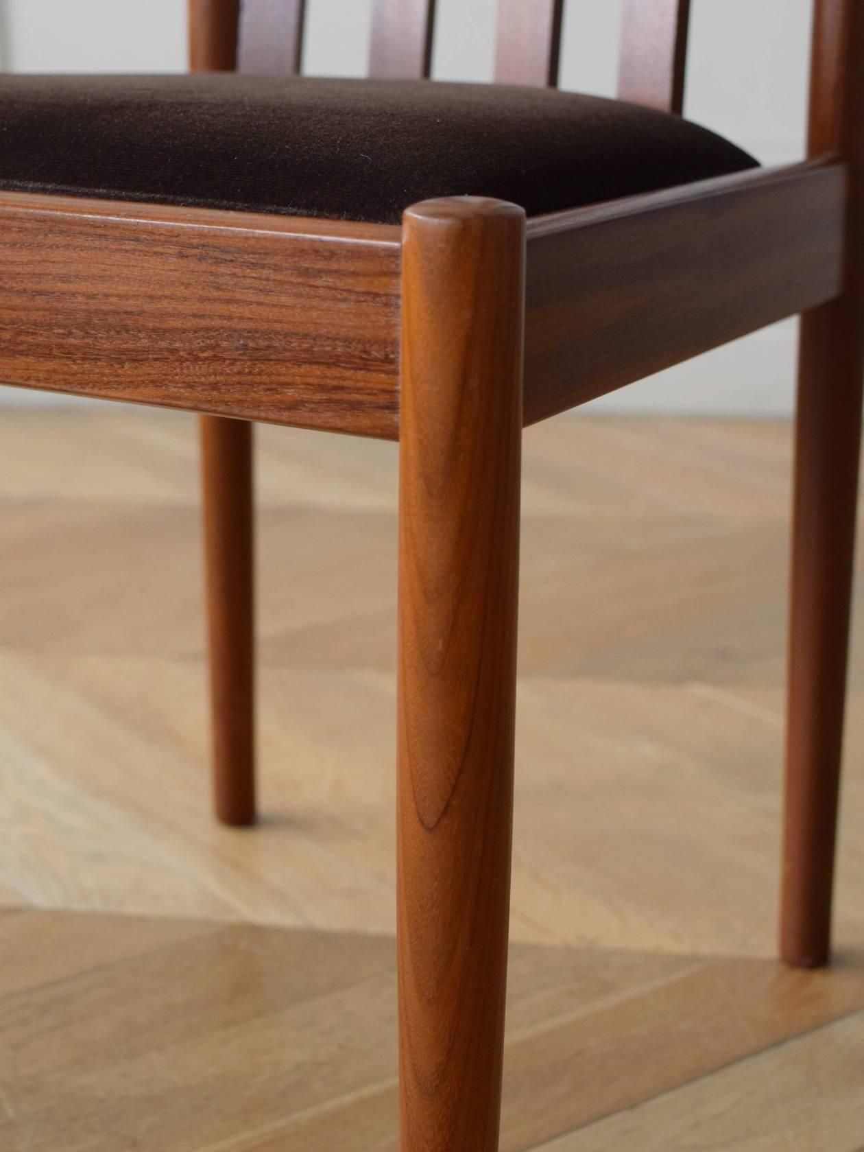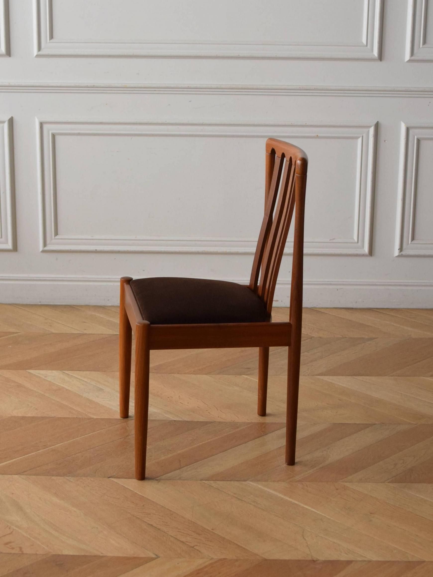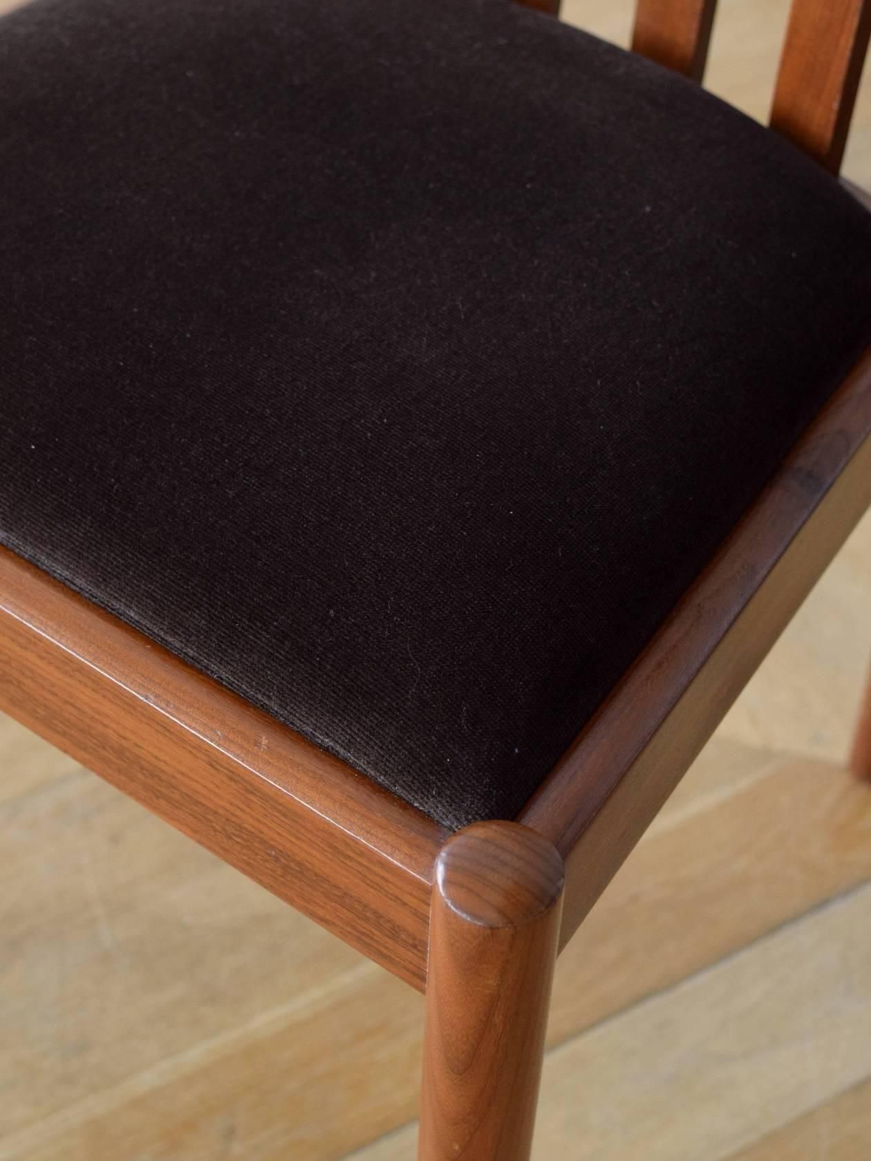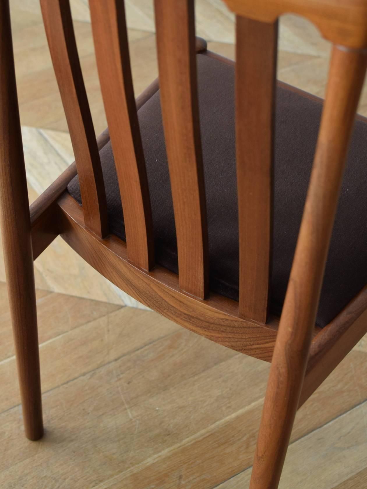 真ん中の4本は背中にピッタリと沿うようなカーブを描き、側面から見ると、美しい立体感や奥行きを感じさせてくれます。 チーク材を使い、フレームは全体に角のない丸みのあるデザインに統一され、上質な作りであることが伺えます。