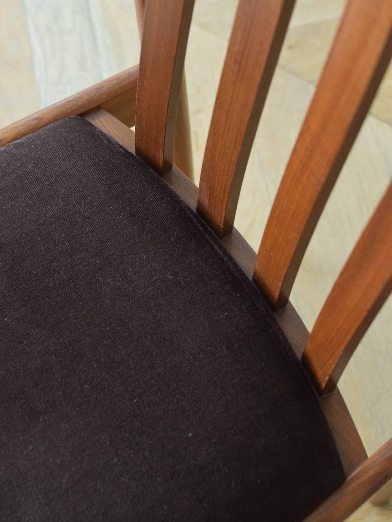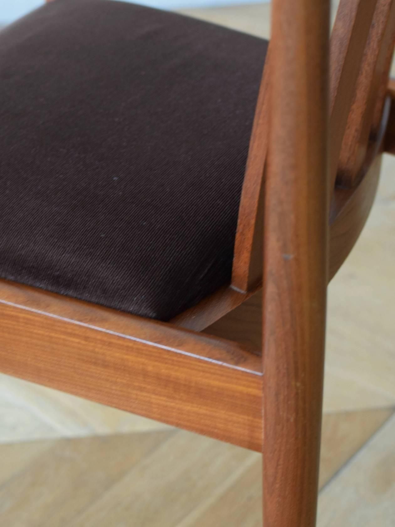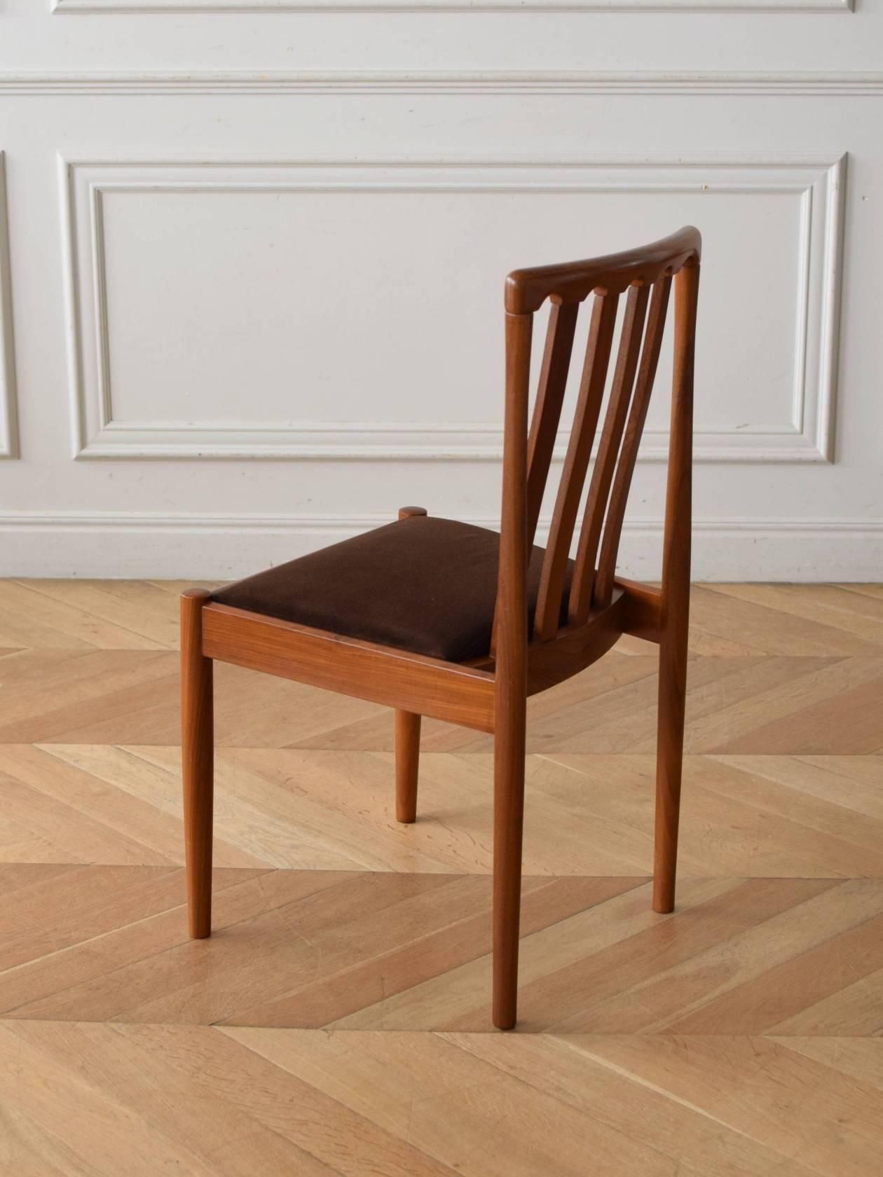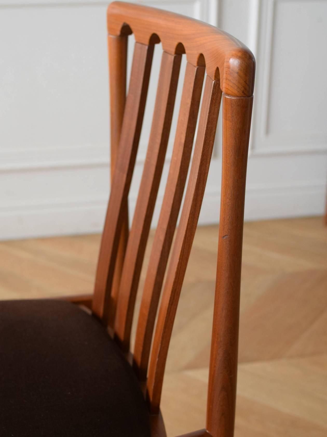 真ん中の4本は背中にピッタリと沿うようなカーブを描き、側面から見ると、美しい立体感や奥行きを感じさせてくれます。 チーク材を使い、フレームは全体に角のない丸みのあるデザインに統一され、上質な作りであることが伺えます。