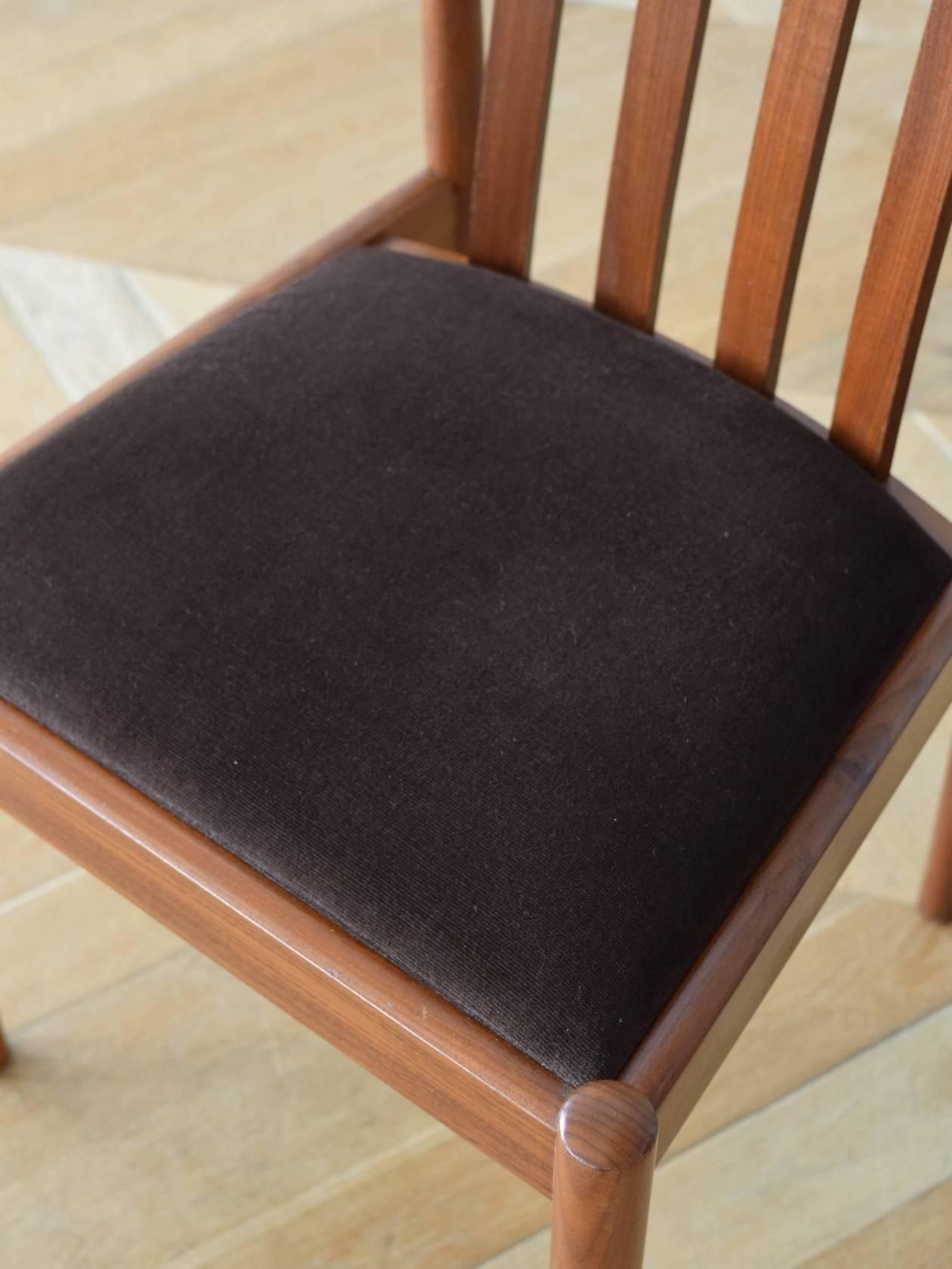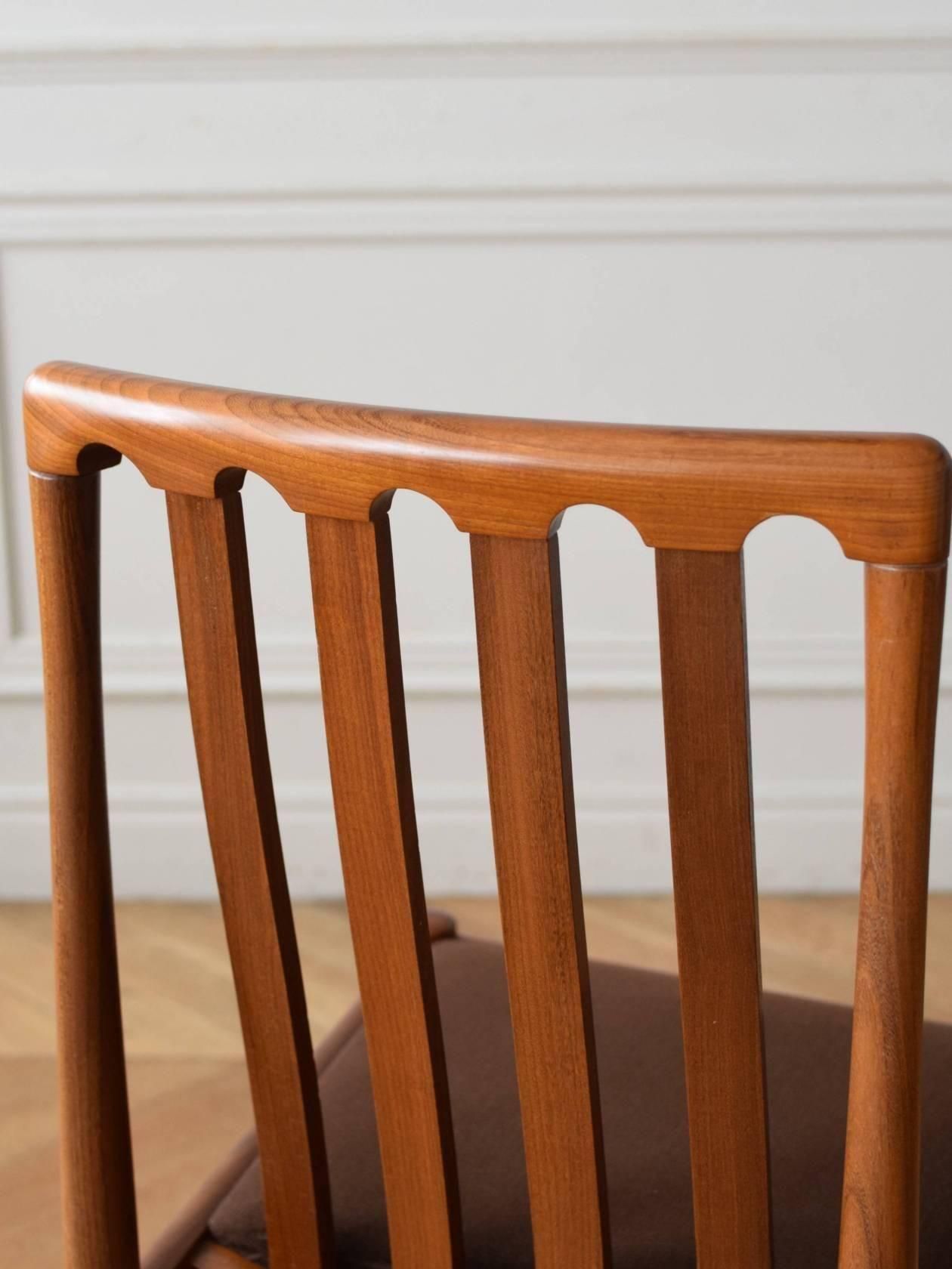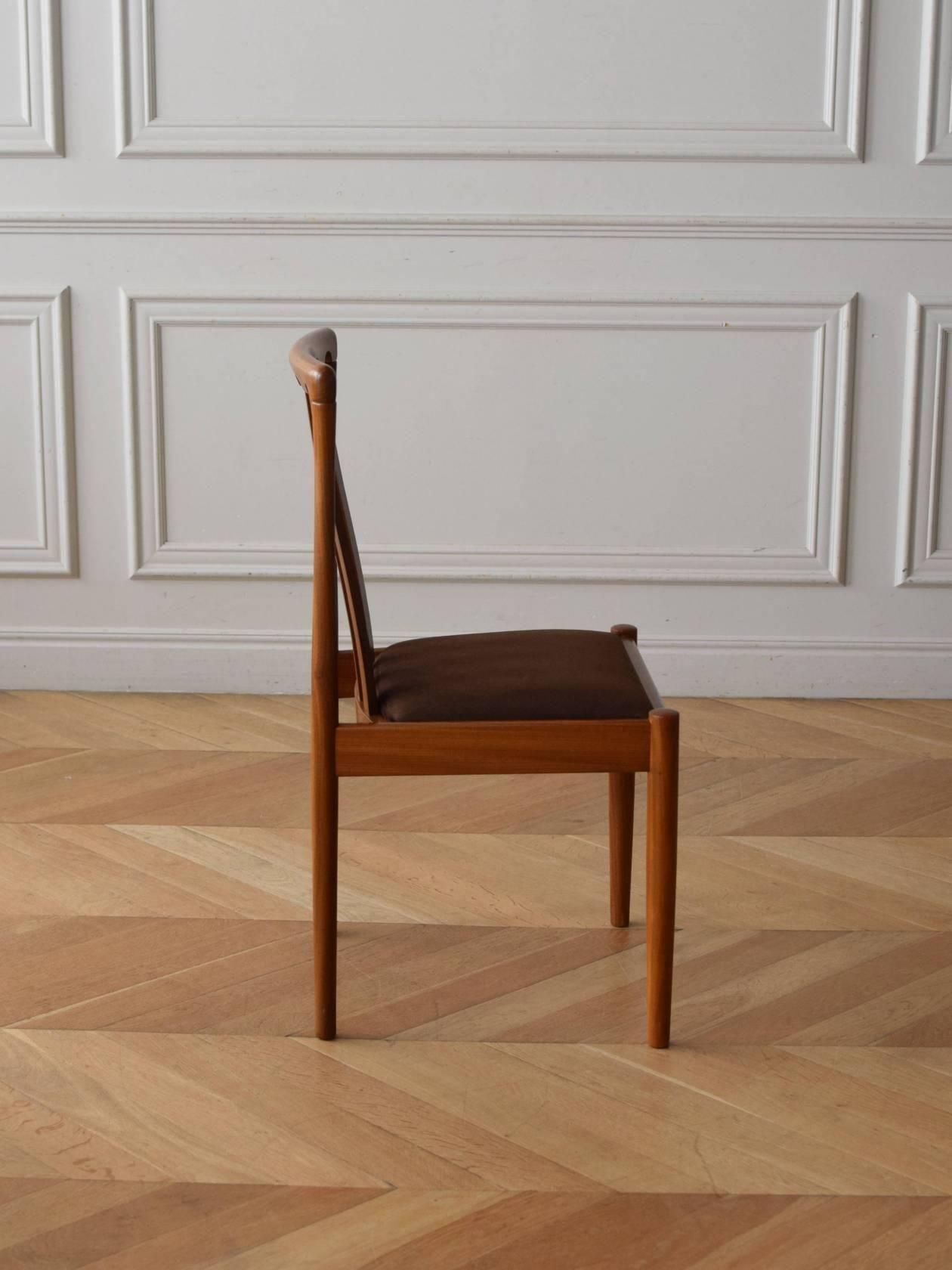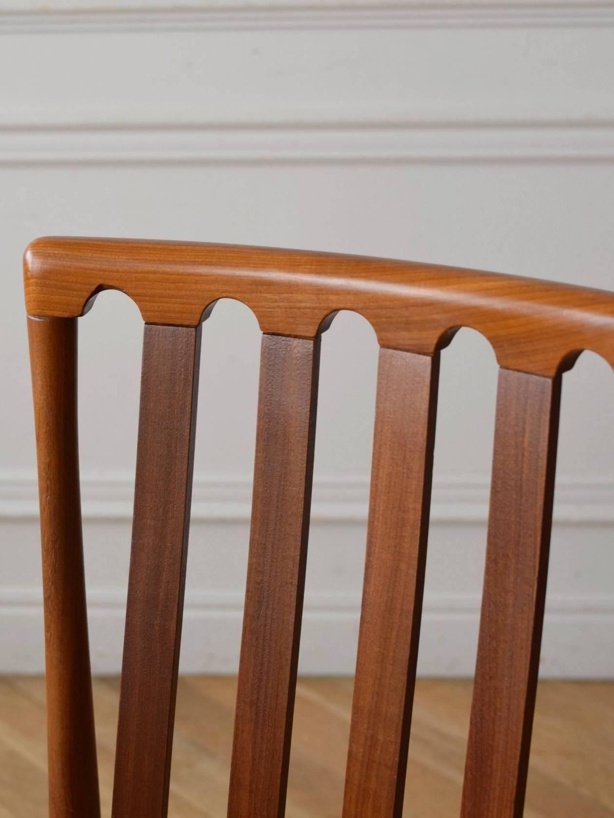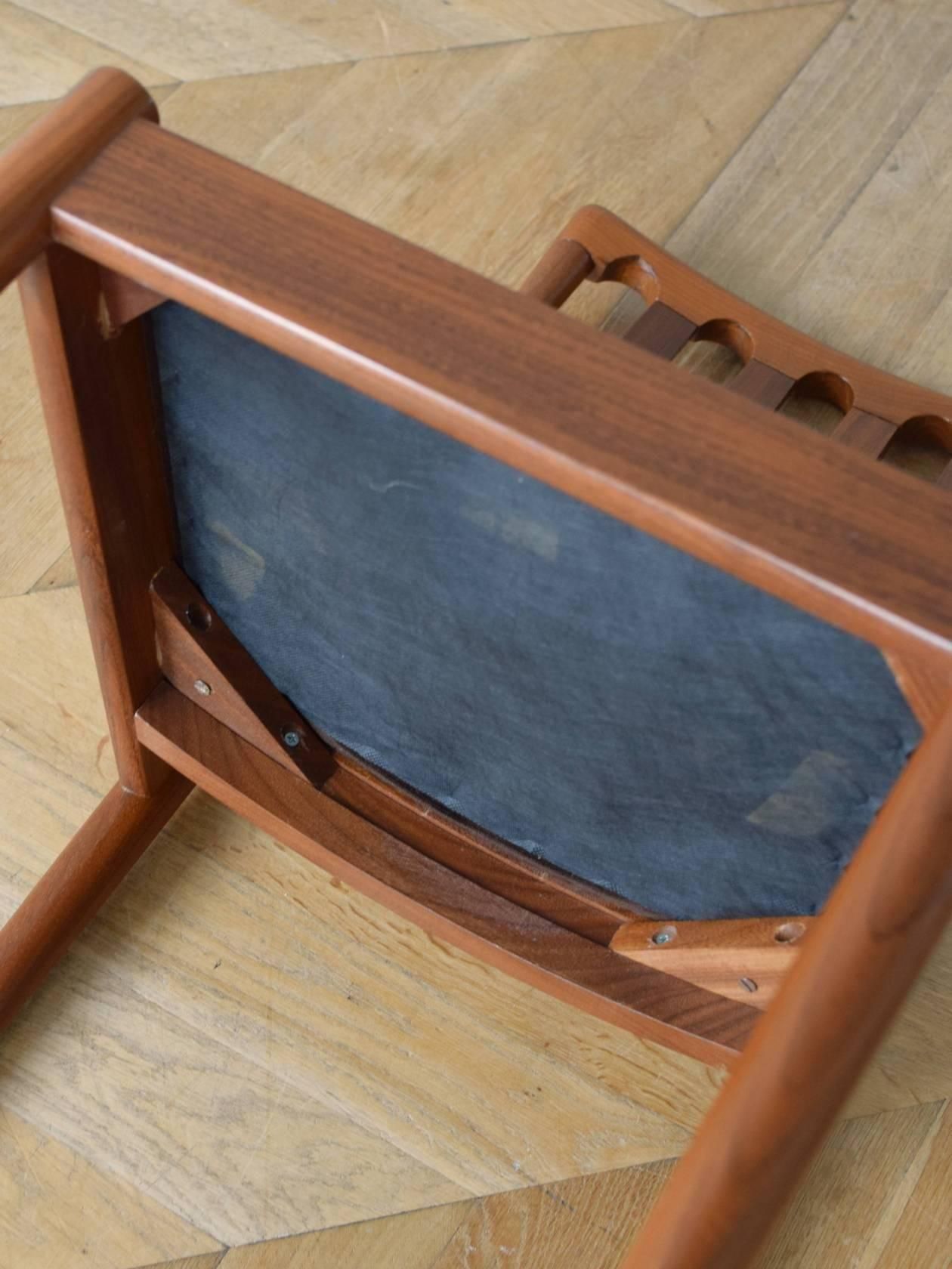 真ん中の4本は背中にピッタリと沿うようなカーブを描き、側面から見ると、美しい立体感や奥行きを感じさせてくれます。 チーク材を使い、フレームは全体に角のない丸みのあるデザインに統一され、上質な作りであることが伺えます。