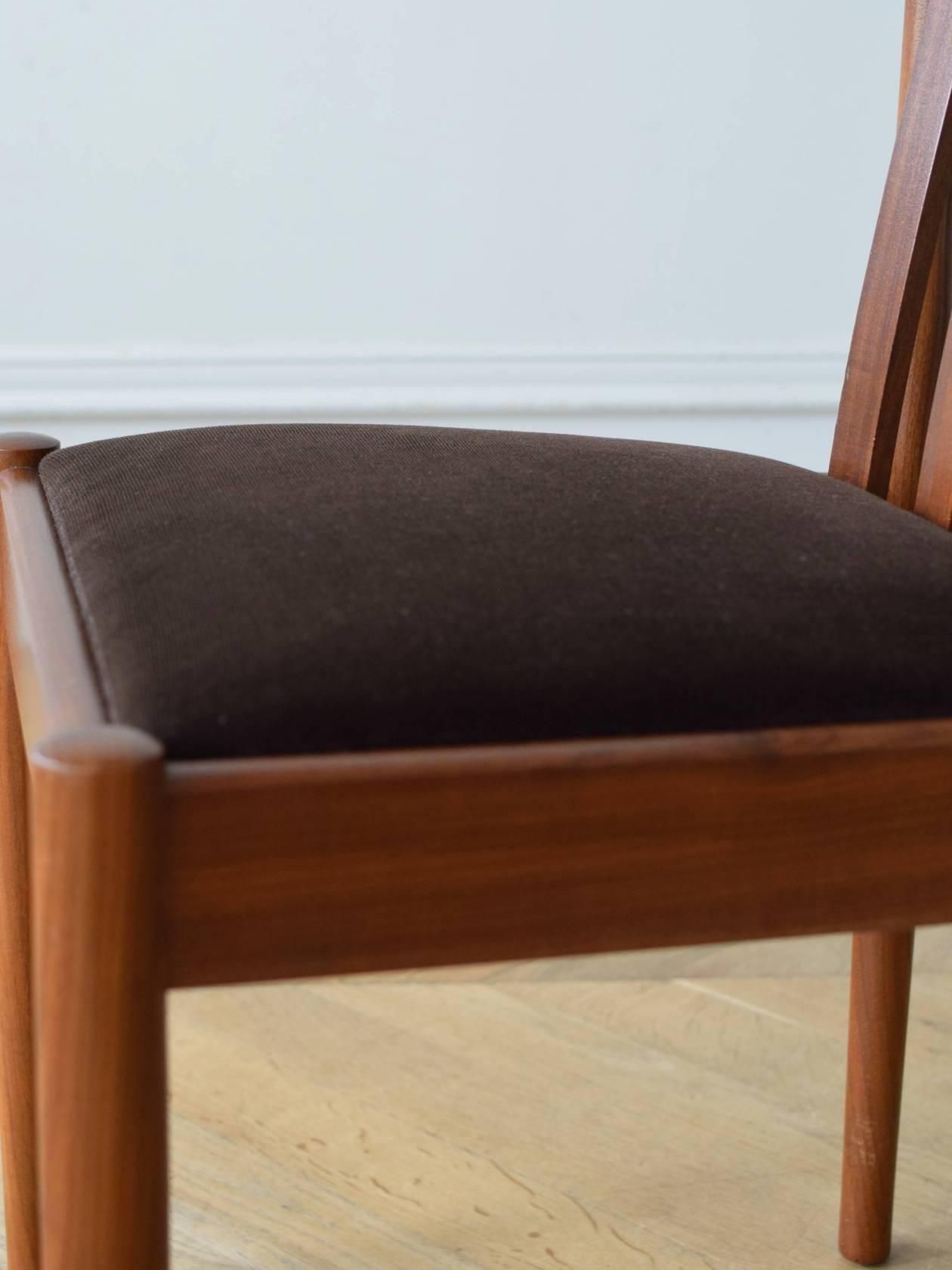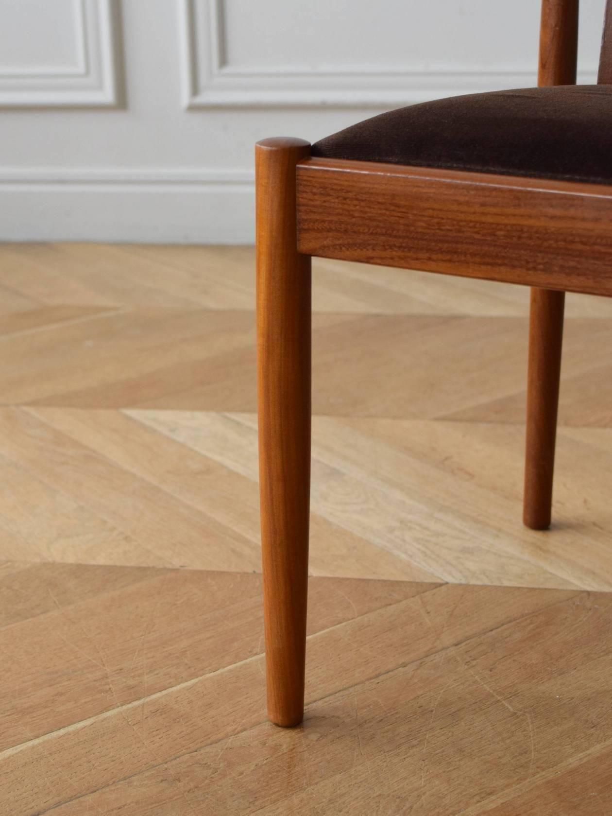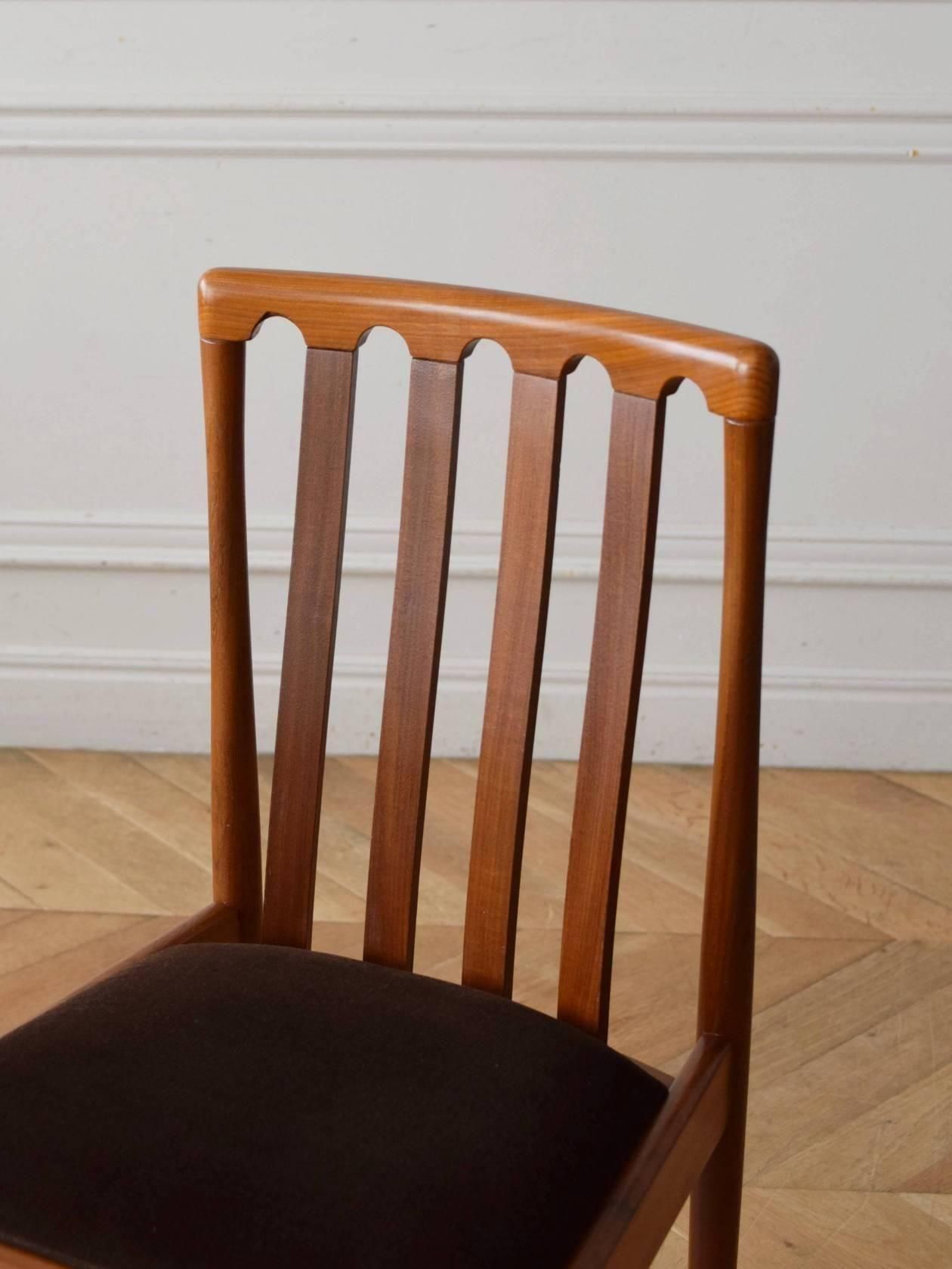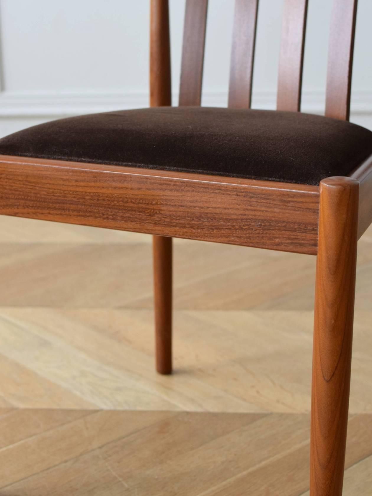 真ん中の4本は背中にピッタリと沿うようなカーブを描き、側面から見ると、美しい立体感や奥行きを感じさせてくれます。 チーク材を使い、フレームは全体に角のない丸みのあるデザインに統一され、上質な作りであることが伺えます。